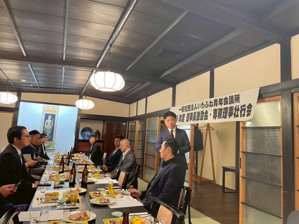 次年度理事長予定者・専務理事予定者を激励するべく、いわふね青年会議所の歴代理事長・専務理事経験者を交えて、「2026年度理事長激励会・専務理事壮行会」を開催しました。