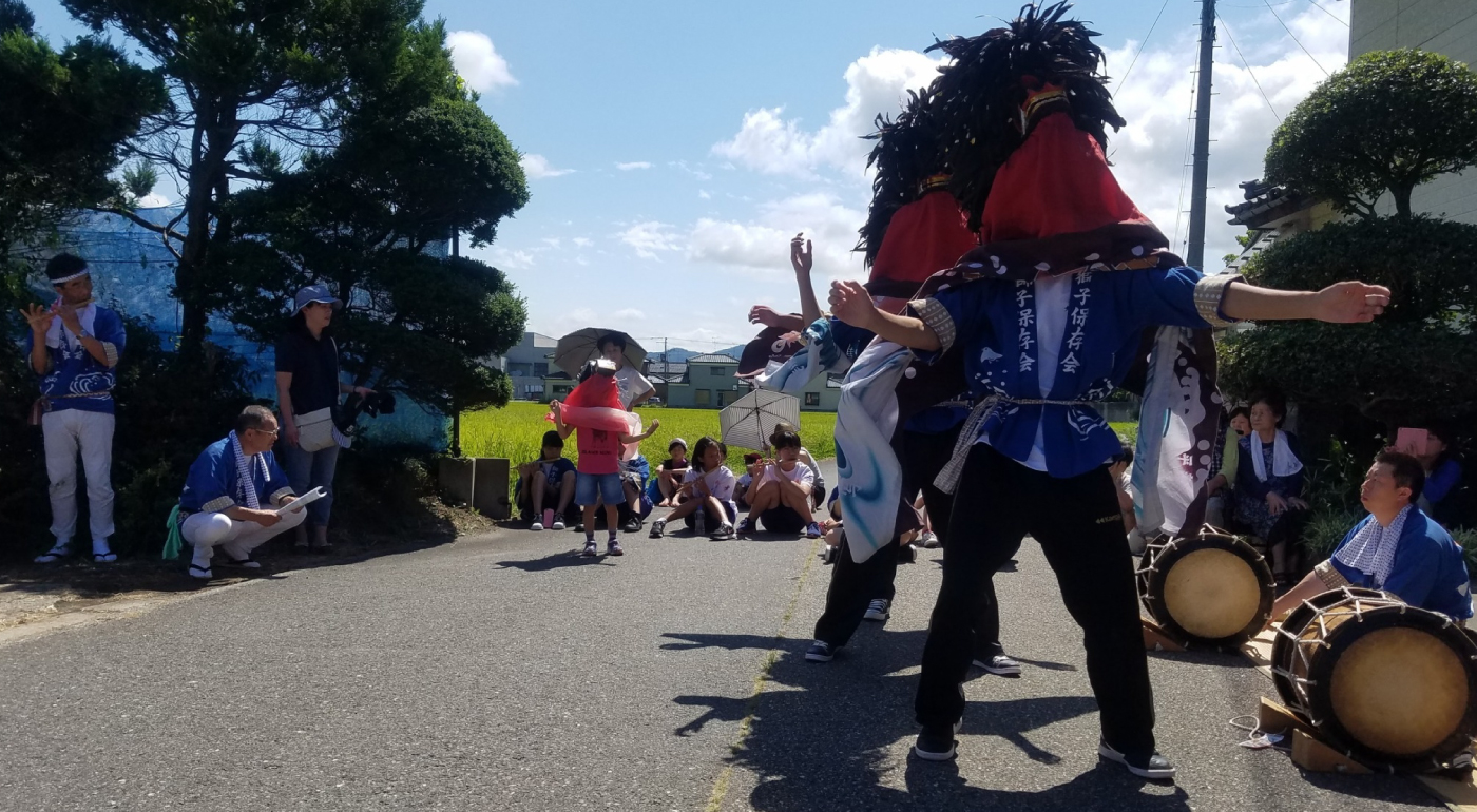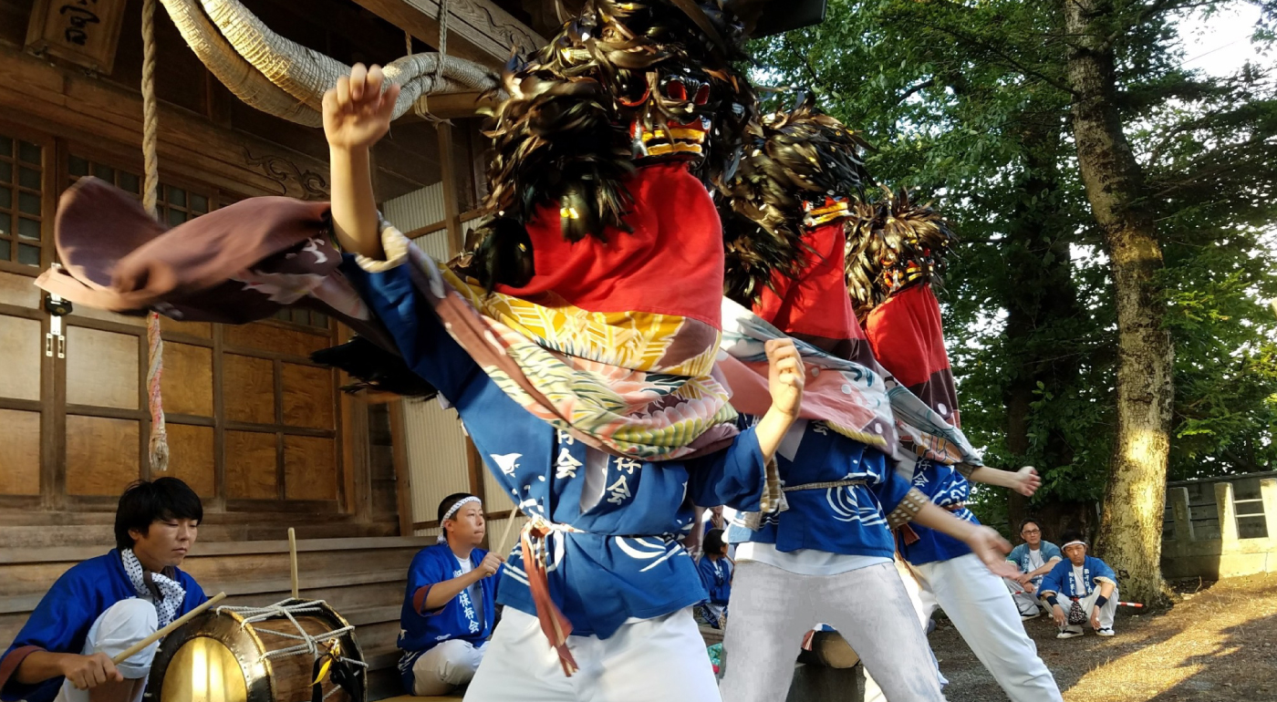 由来 | ・集落内の五穀豊穣、家内安全を祈念して奉納している。 ・伝承は定かではないが、200年前ごろからといわれている。 ・上下鍜冶屋集落から習ってきたと言われている。 ・獅子宿と言われる家があり、代々獅子頭を保護している。 ・水引幕をつけることで獅子に魂が入り、幕を刈ることで魂が抜けるとされている。 ・平成19年11月に村上市の無形民俗文化財に指定 |