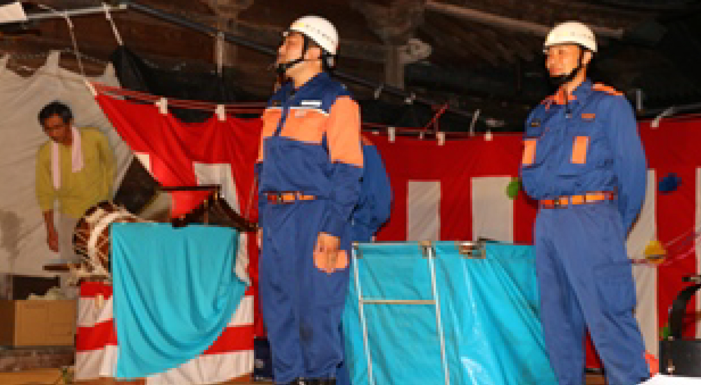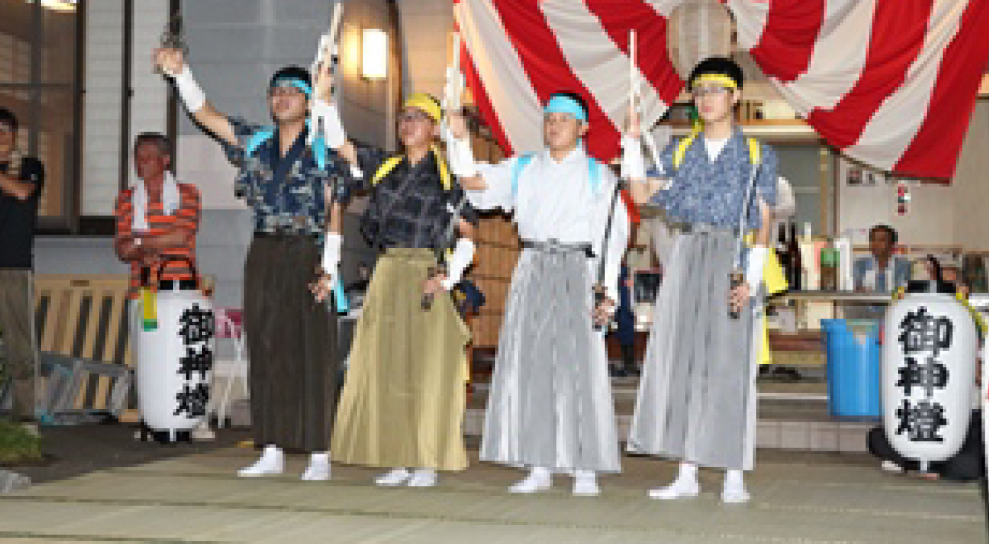 衣装・飾り | 「獅子舞」踊りて白い服装・手袋・手拭い 「剣舞」浴衣・袴(運営会所有) タスキとハチマキ(運営会所有(黄色と水色) 「おばこ・一文」浴衣とハチマキと小手(運営会所有) 「一般」ハッピ(一部運営会所有) 購入先は衣装関係は武者呉服店 |