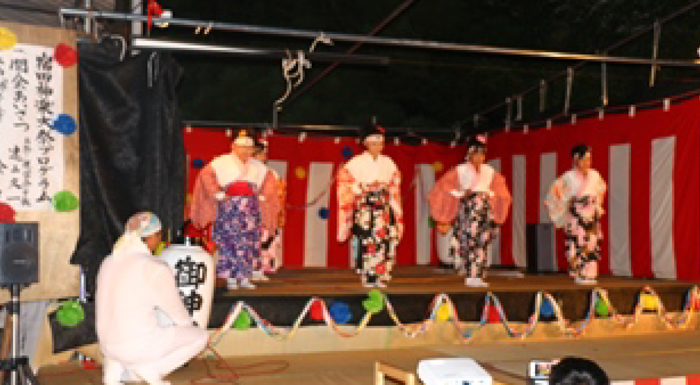 開催時期 | 神楽は8月25日で神主による拝み上げが行われますが、伝統芸能を披露するのは前日(8月24日)の宵宮で披露しています。 |