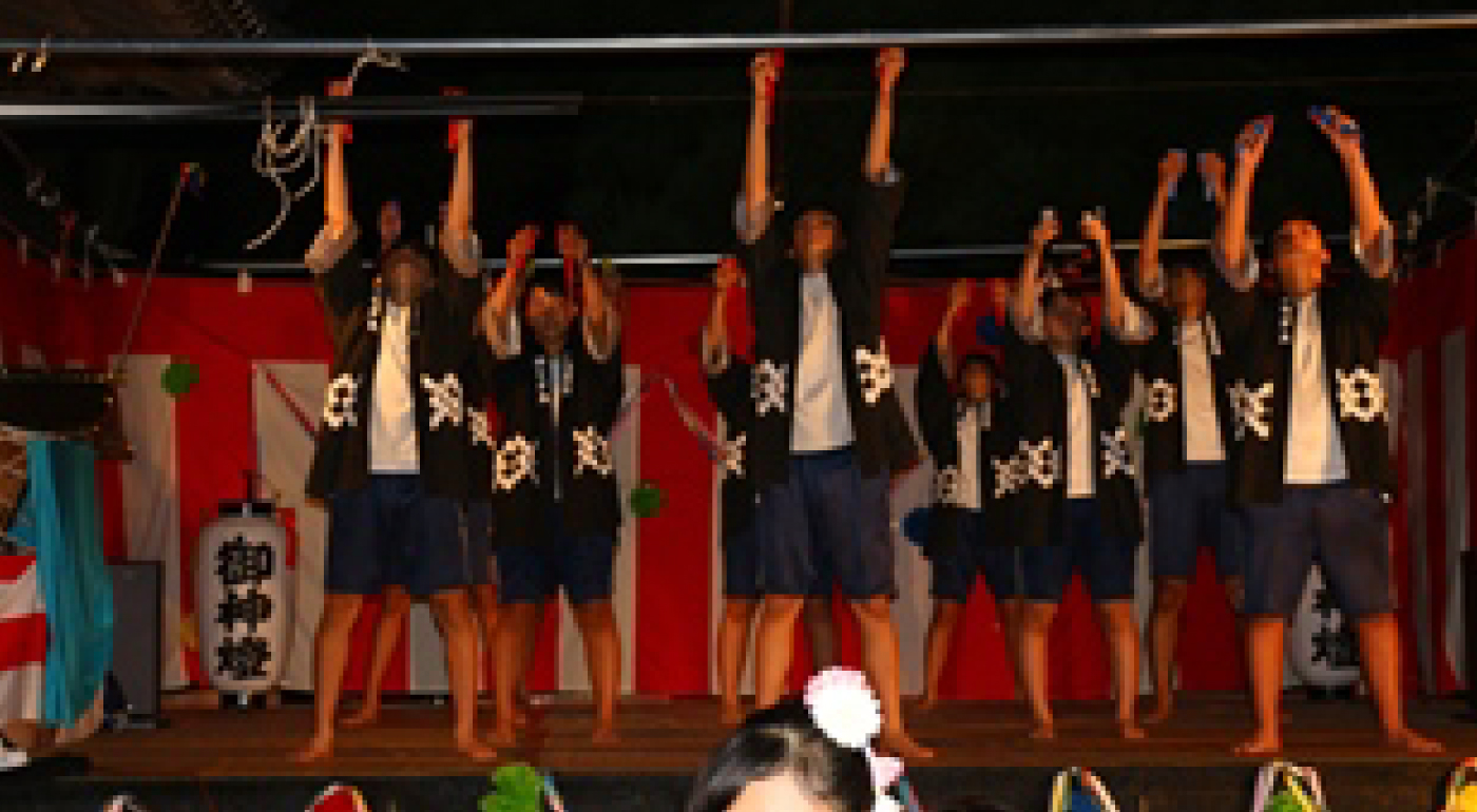 本番に向けた1年間の流れ | 6月末:総会 7月14日:天王様幟上げ 8月24日:神楽幟上げ 9月1日:風祭幟上げ 7月14日~8月23日:週2~3回のペース練習 8月1日・22日:踊りの確認会 |