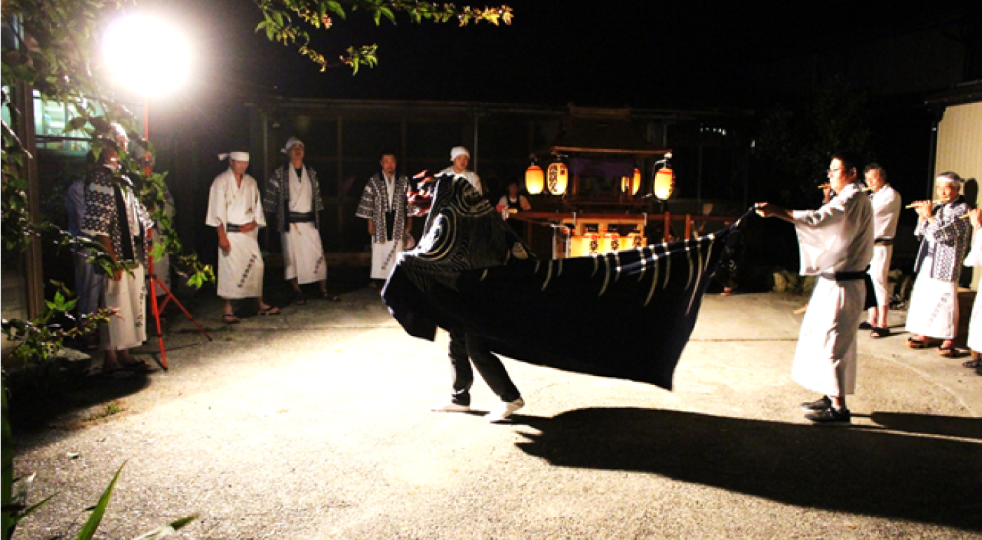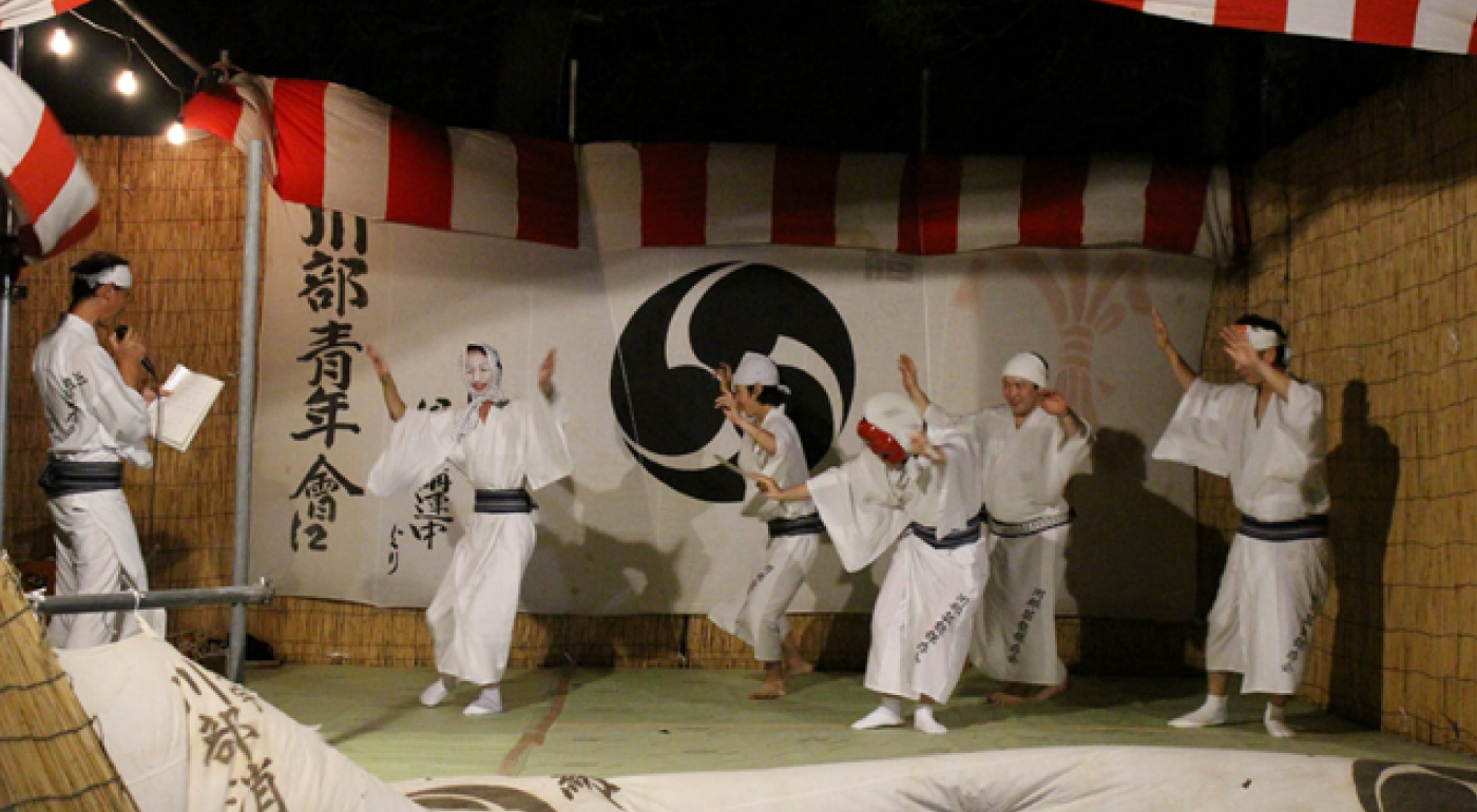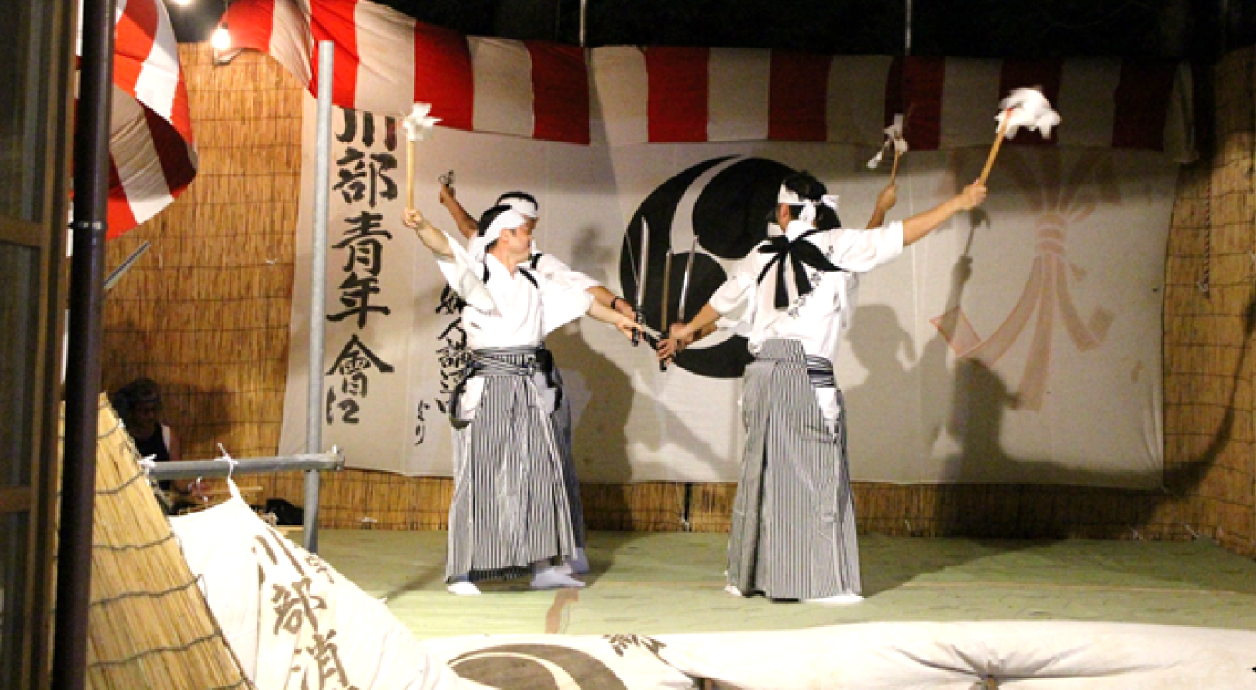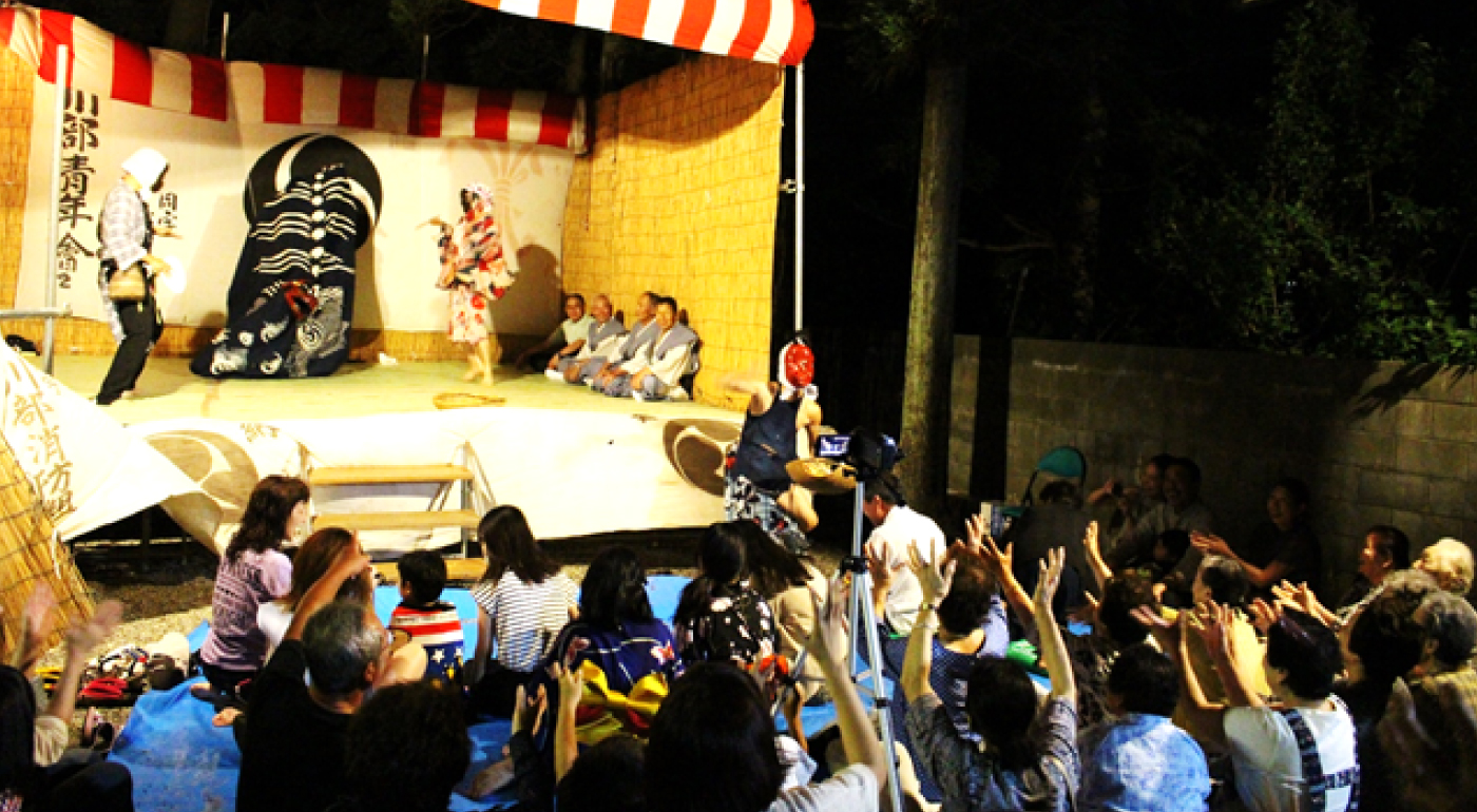 毎年お盆過ぎから練習を行ない、9月2日に川部集落内の大山祇神社境内にて開催されています。