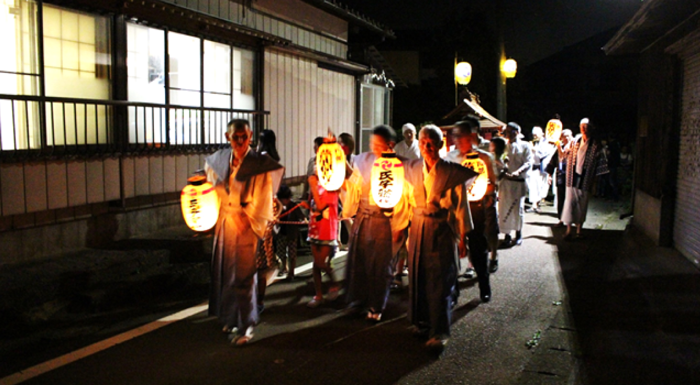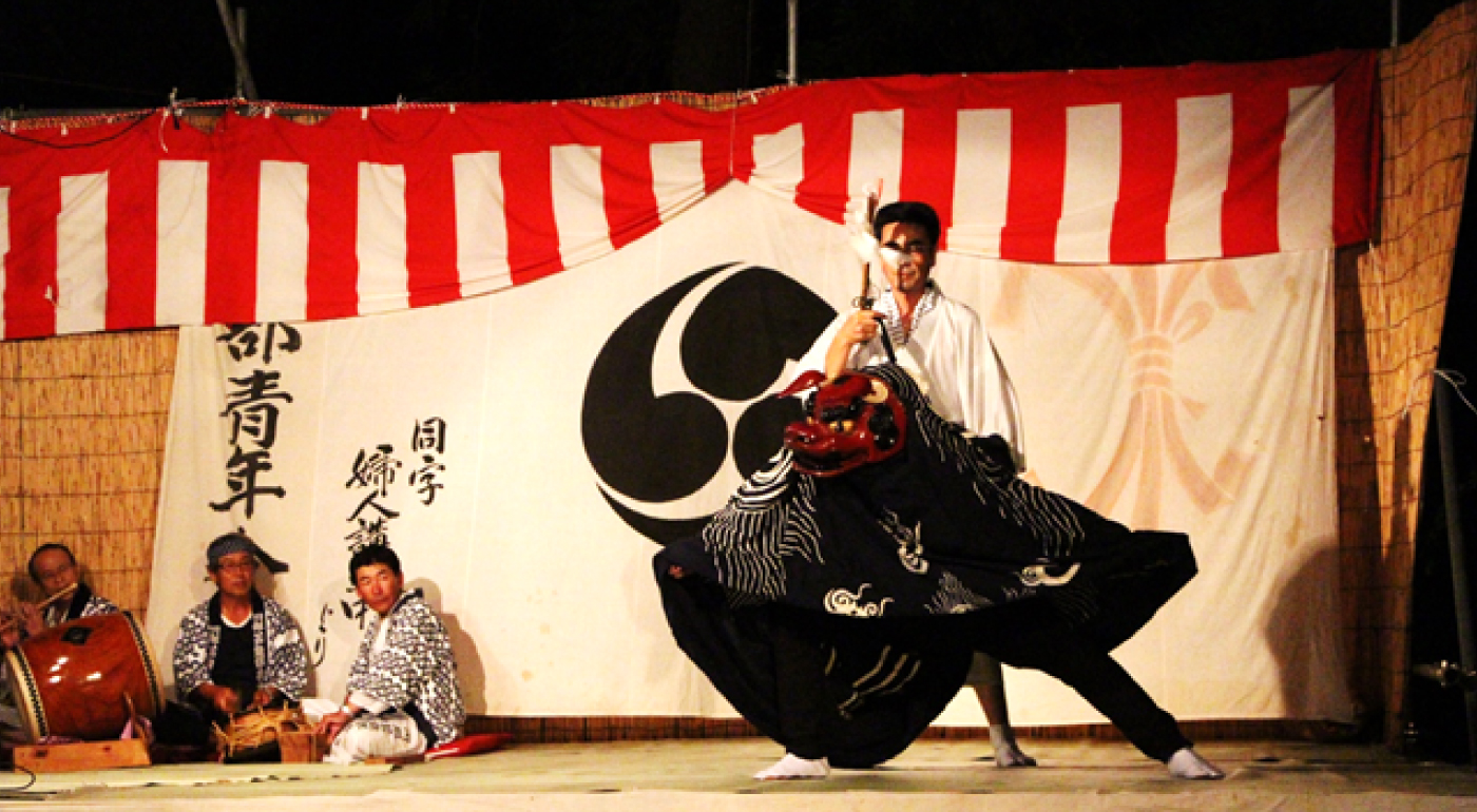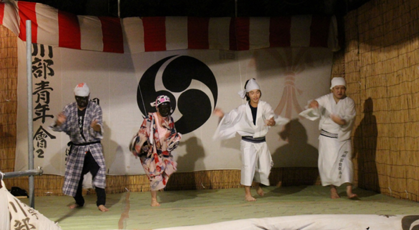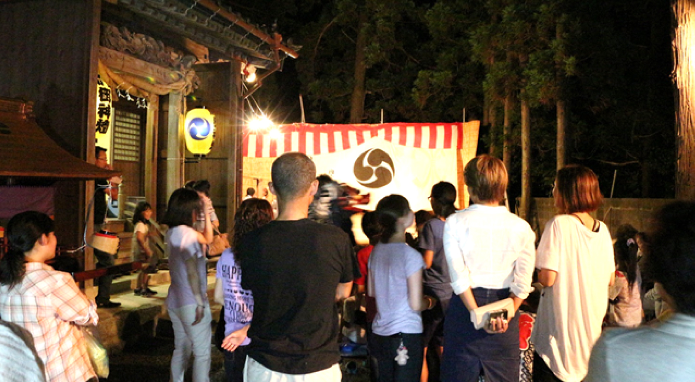 毎年お盆過ぎから練習を行ない、9月2日に川部集落内の大山祇神社境内にて開催されています。
