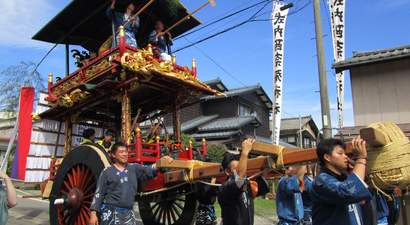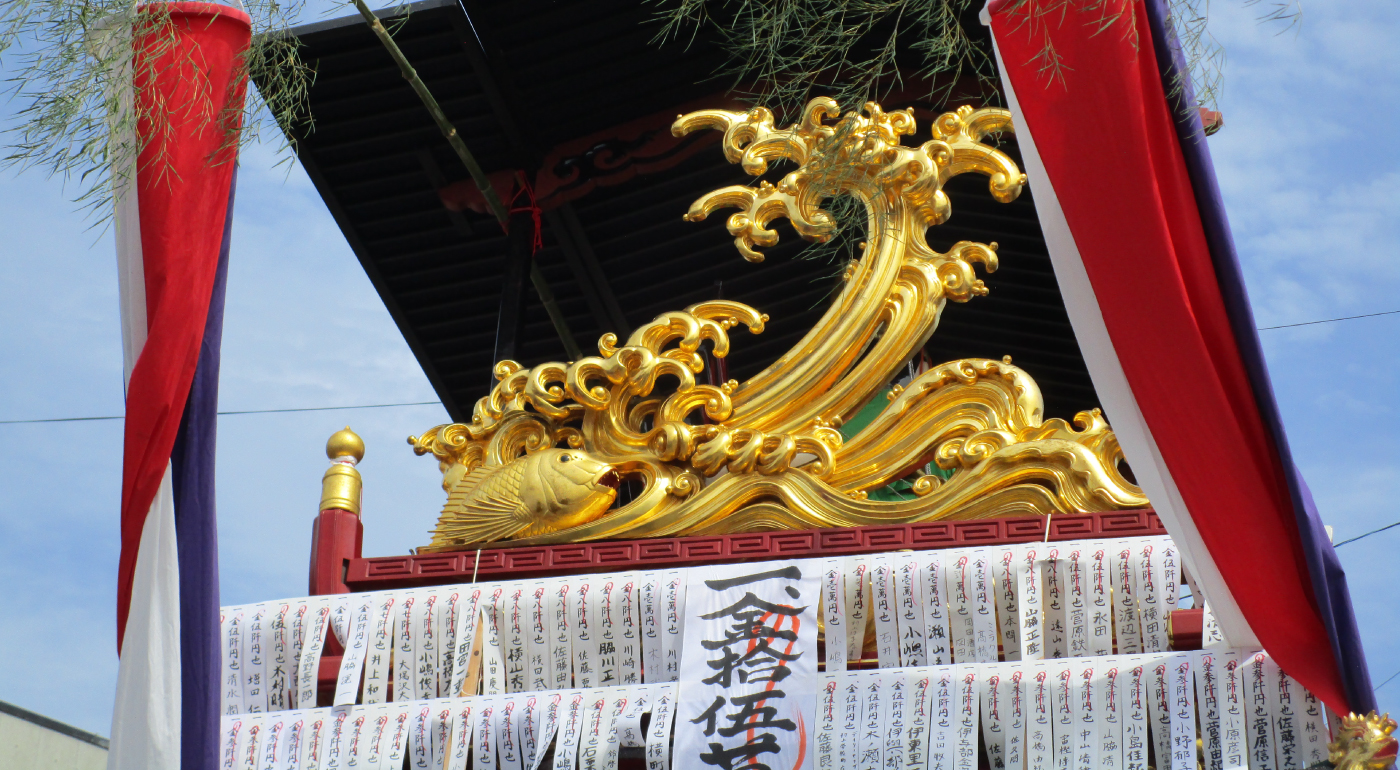 瀬波中町の屋台は、瀬波では一番大きな屋台である。江戸時代の寛政6年(1794)に村上町(現村上地域村上地区)の大工町から購入したものと伝えられており、屋台全体に金箔、漆塗りを施した装飾彫刻が見られる。二階の乗せ物は、鯛を抱えた恵比寿像である。