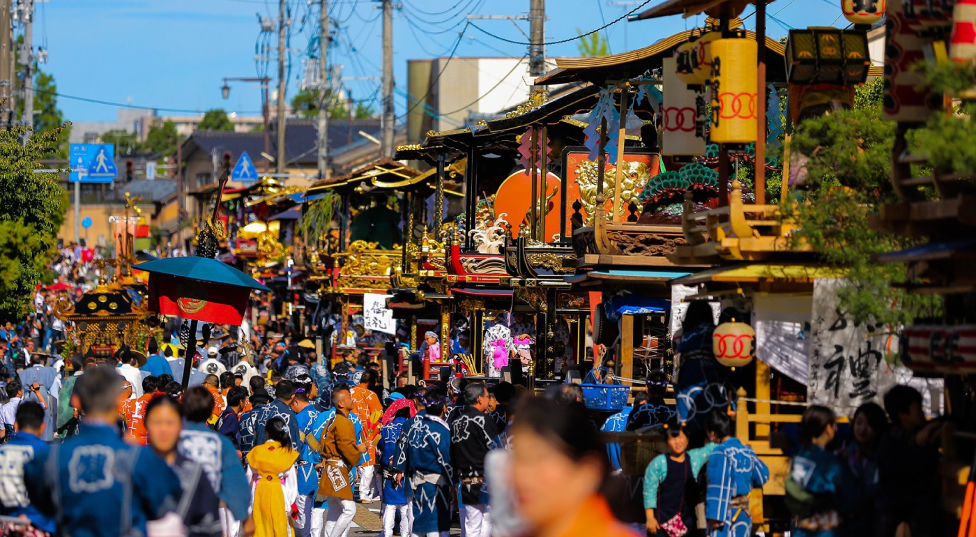 おススメの見どころ | 7月6日(宵祭り)から7日(本祭り)にかけて村上の伝統産業である彫刻や漆塗りを施し、金銀の飾りをつけた絢爛豪華な屋台が市の中心部を巡る村上大祭。 県下三大祭りの一つに数えられるこの大祭は、三基の神輿に御神霊を奉遷し、太鼓を先導とする長い行列が各町内を巡行する「お旅神事」です。 7日午前0時。太鼓の音が鳴り響き、祭礼の始まりを告げると、各町内では羽黒神社への出発準備を始め、まだ夜も明けやらぬ午前5時ごろになると三々五々、神社前に19台の屋台が集合し、午前8時の花火を合図に、御神霊を載せた神輿が出発します。その後を19町内の屋台が続き、上下にゆれ、左右にうねりながら優雅に進む屋台に沿道からの歓声が上がります。 |