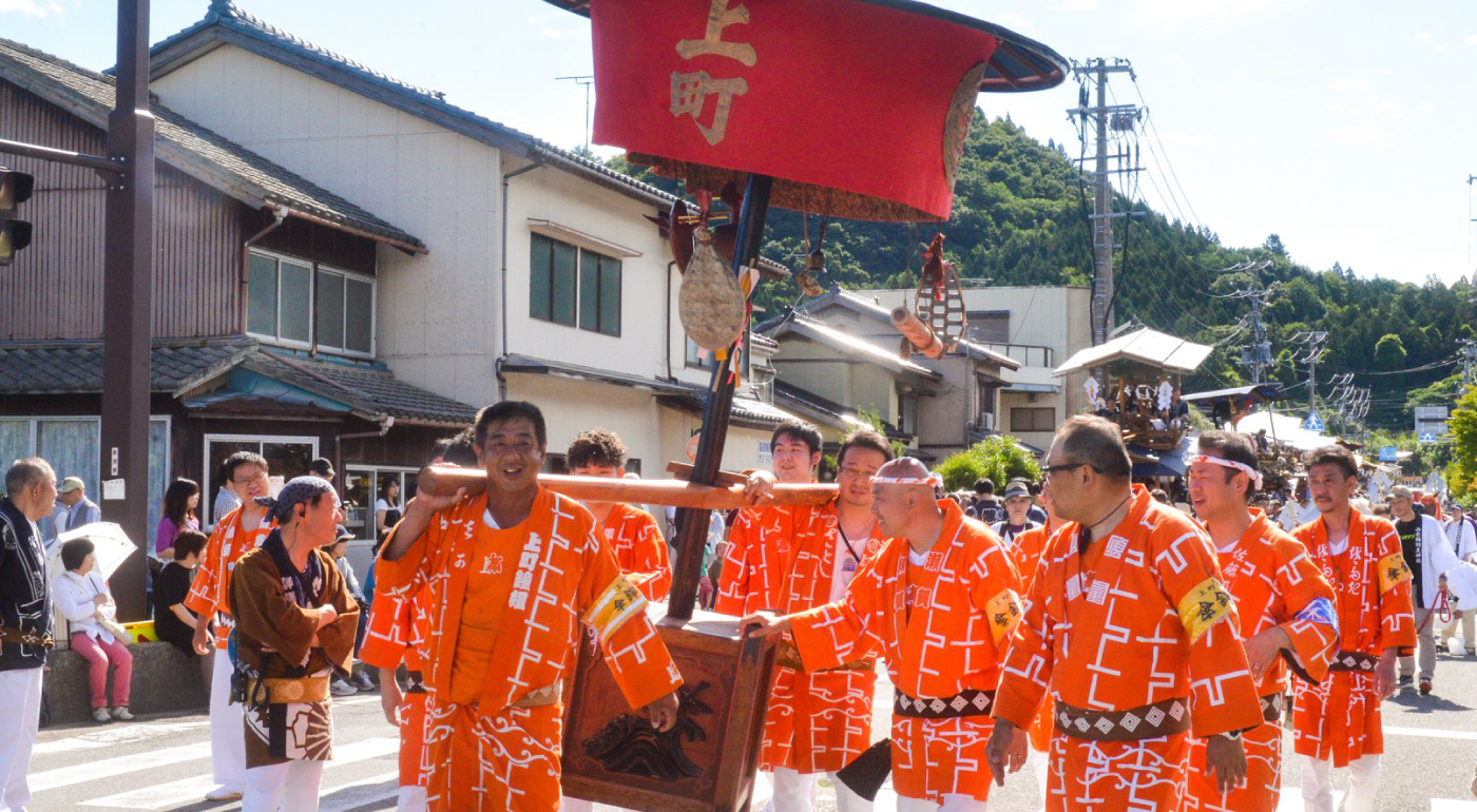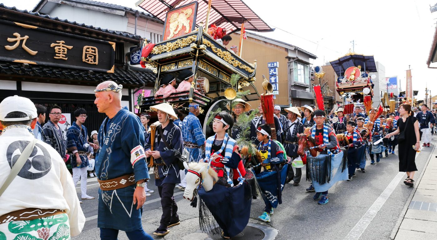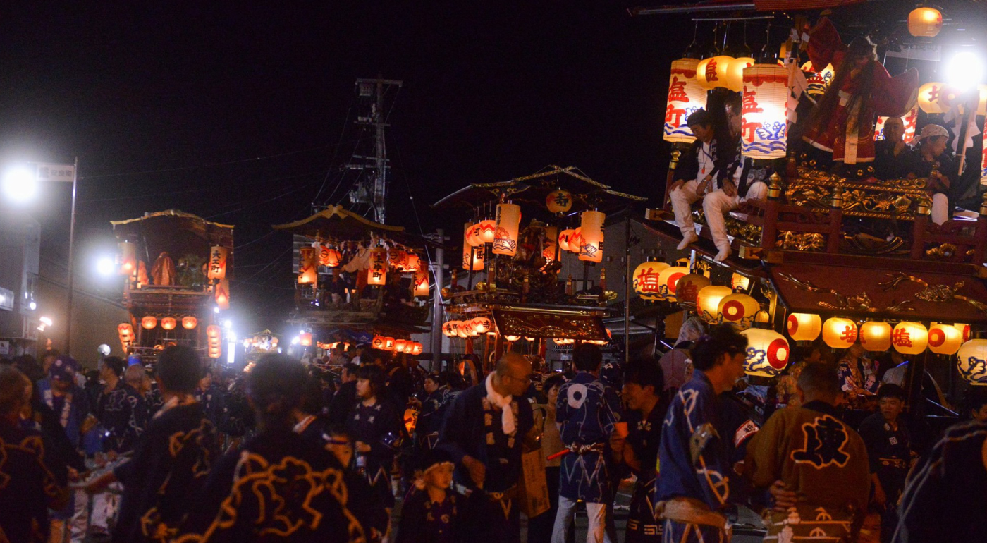 近年の取り組み | 早朝から深夜までの長時間運行をやめ、短時間化して負担軽減を図っている。近年は町内外からの参加者も曳き回しに参加している。 |
