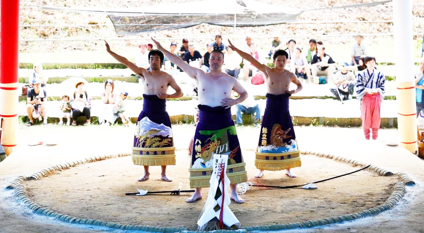 奉納相撲は、慶応2年頃、勝木集落にあった天王様の境内で、当時の若連中同志が集まって相撲をとったことが始まりで、その後、八幡宮境内に場所を移し、例大祭に合わせて飛入り自由で郷土青年が東西に分かれて相撲をとるようになった。いつの頃からか越後・庄内の対抗相撲も行うようになり、現在も恒例となっている。昭和58年からは子ども相撲も加わった。
